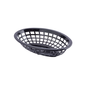 | /Oval Plastic Basket, Black, 20x13.5x5cm The Oval Plastic Basket in black (20 x 13.5 x 5cm) is a practical and lightweight serving solution for foo...
